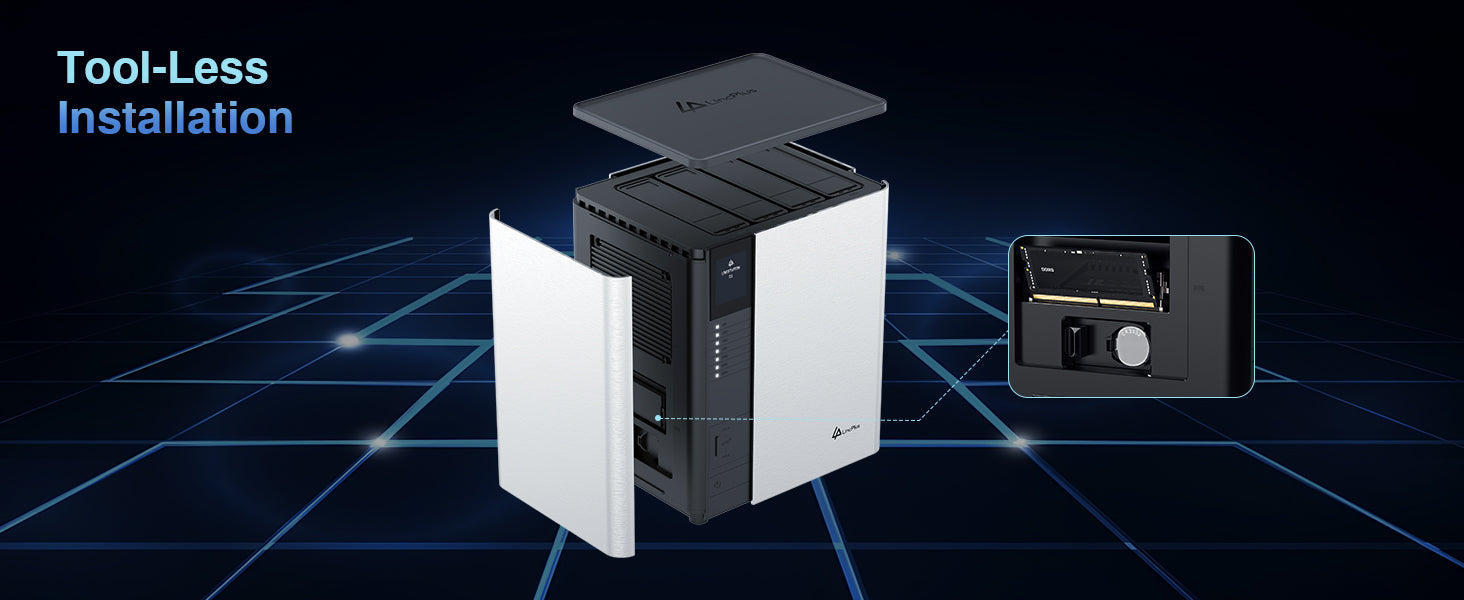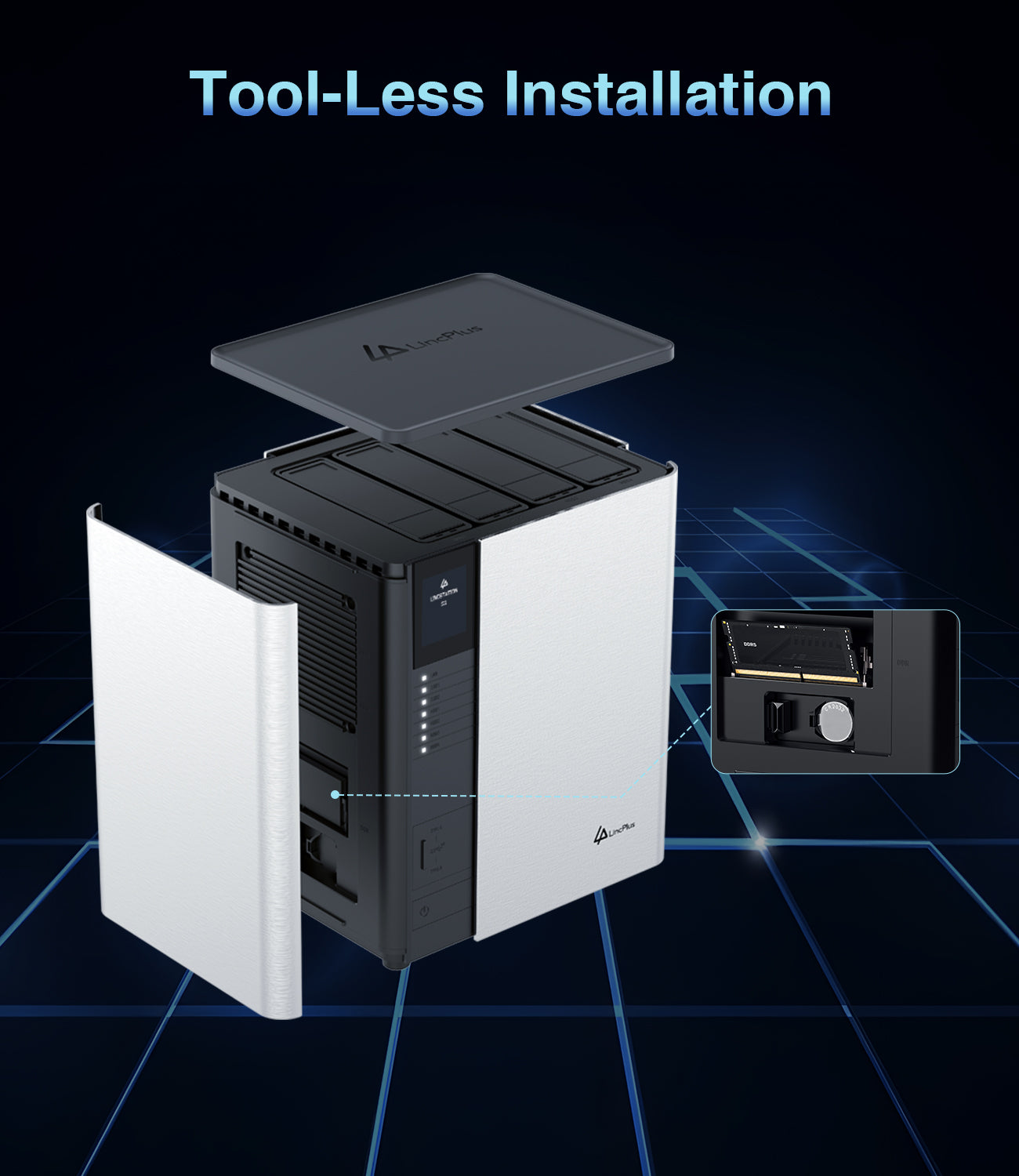 LincStation S1 features a unique tool-free design, allowing you to install or swap drives effortlessly—no screwdriver required.