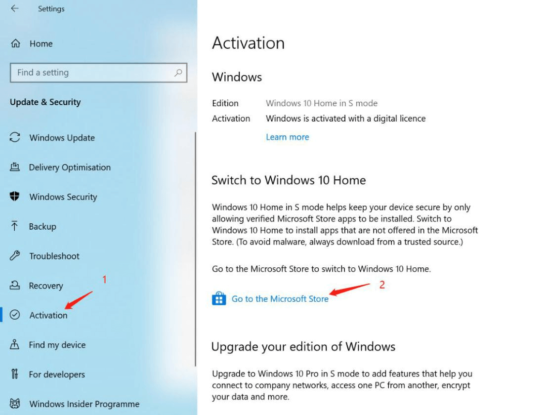 4. Click “Activation”, if not activated, please activate firstly, then click “Go to Microsoft Store”: