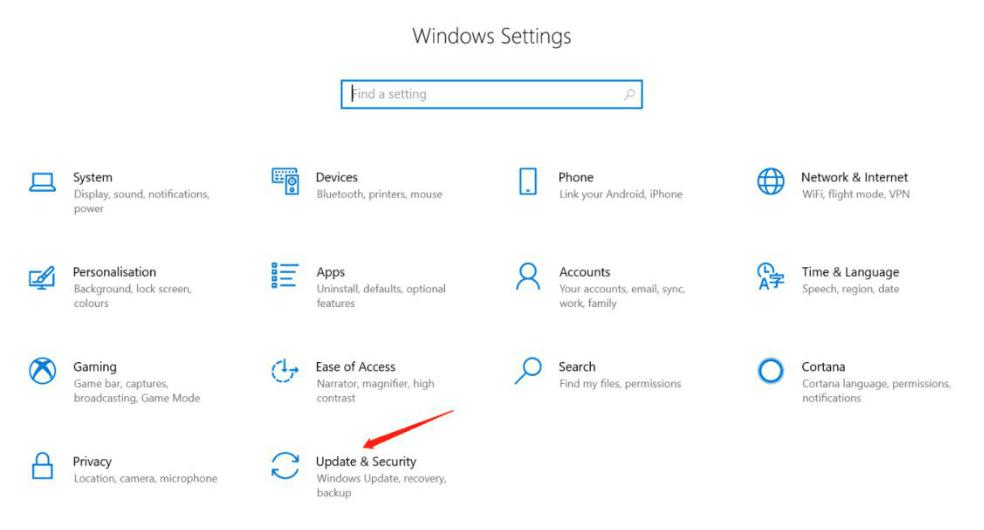 3. Click "Update & Security":
