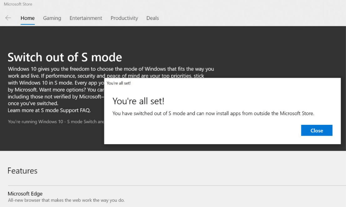 7. Congratulations! you've switched out of S mode to home successfully, please restart your computer: