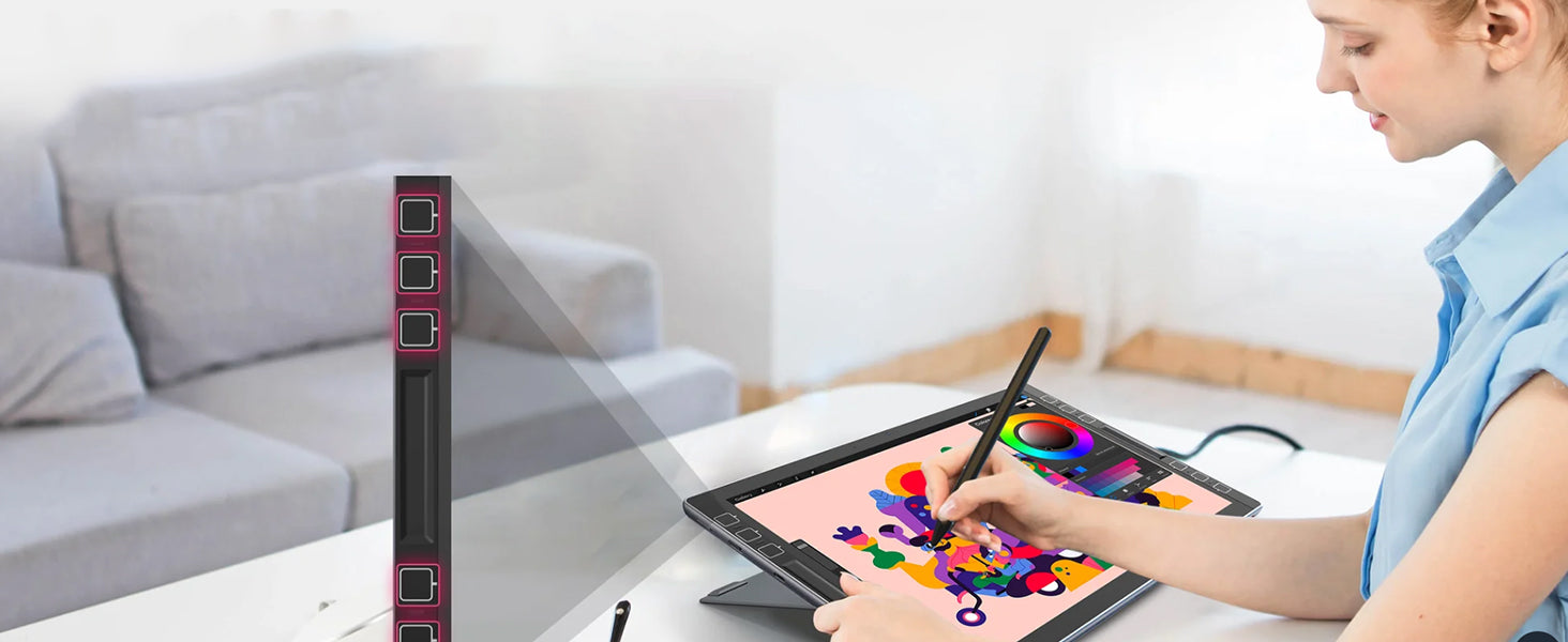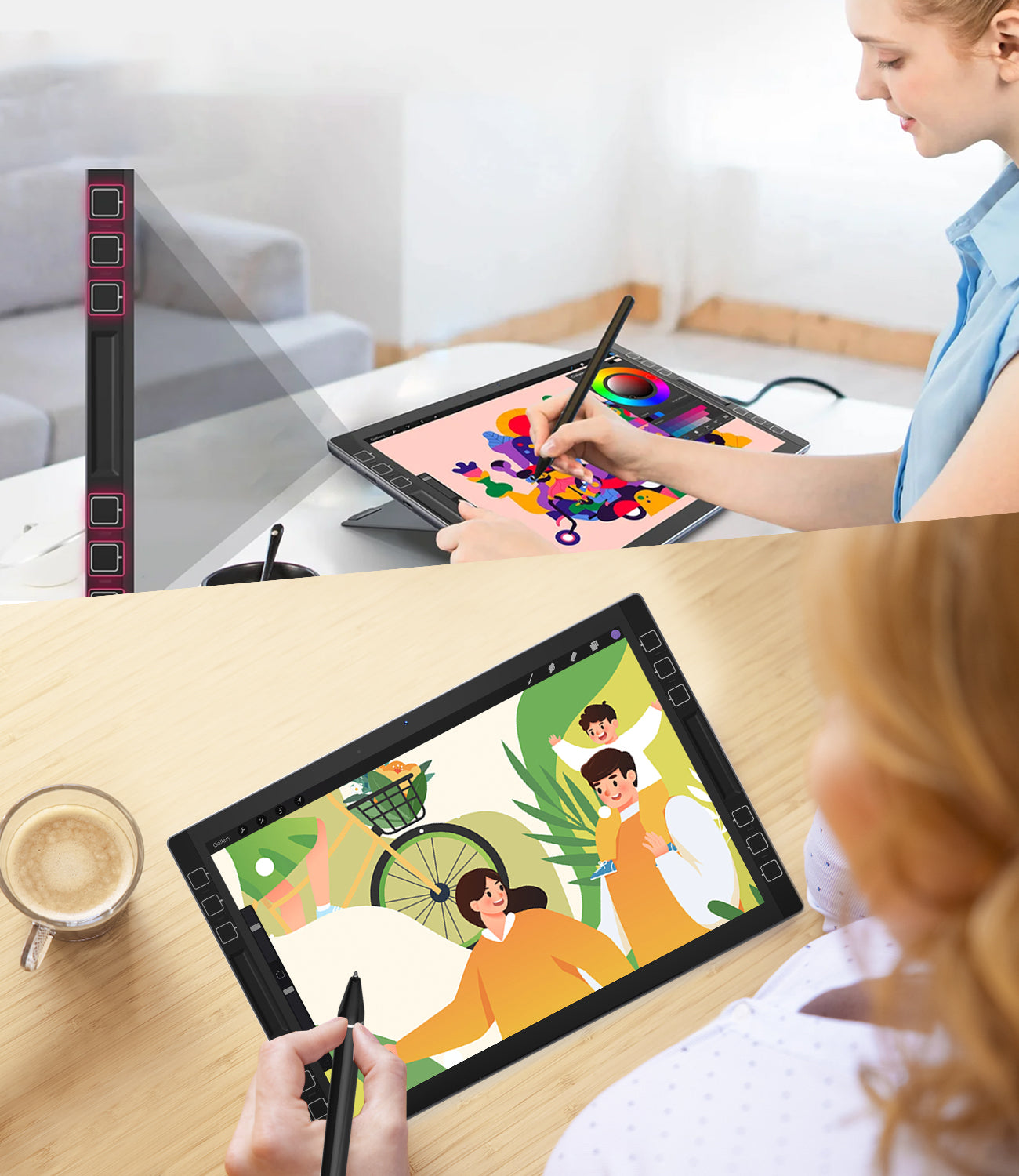 LincStudio S1 has set up 6 shortcut keys on the left and right sides of the screen. We know that many talented creators are left-handed. This is a left-hand-friendly tablet. The shortcut keys can be used on both sides of this tablet.