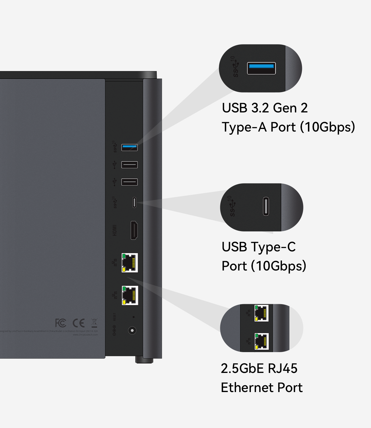 LincStation S1 is equipped with dual 2.5GbE ports and multiple 10Gbps connections, ensuring lightning-fast data transfer speeds