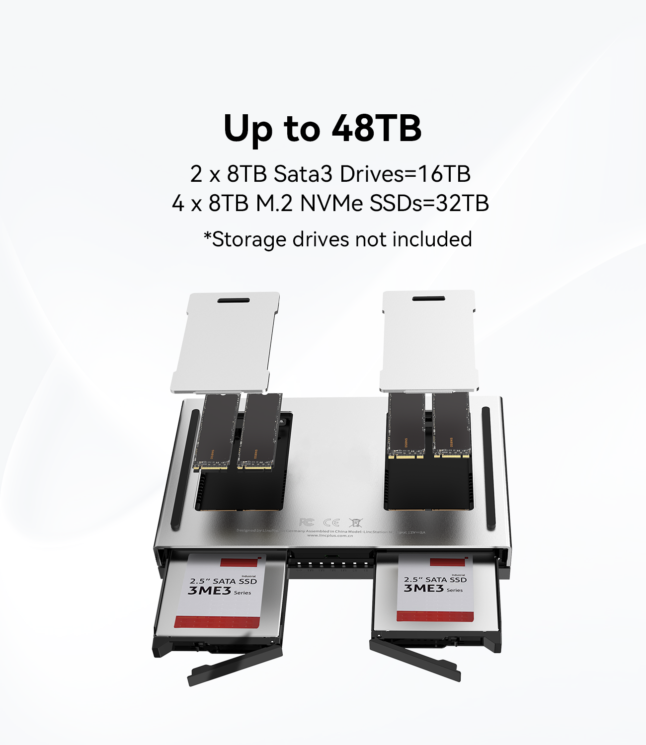 With 2 × SATA 3.0 and 4 × M.2 NVMe slots, the LincStation N1 supports up to 48TB of total storage.