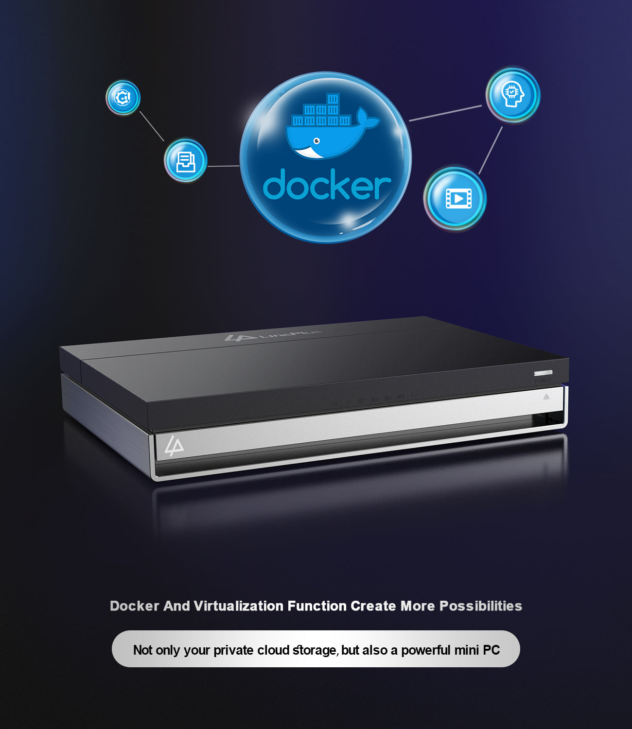- This mini NAS supports full-featured docker and virtualization, comes with Unraid License. One-click deployment and installation of the docker application suite. Support to build virtual machines in the system, install Android, Linux, Windows, and support hardware pass-through (Unraid version). LincStation NAS is not only your network attached storage, but also a powerful private cloud and home server.