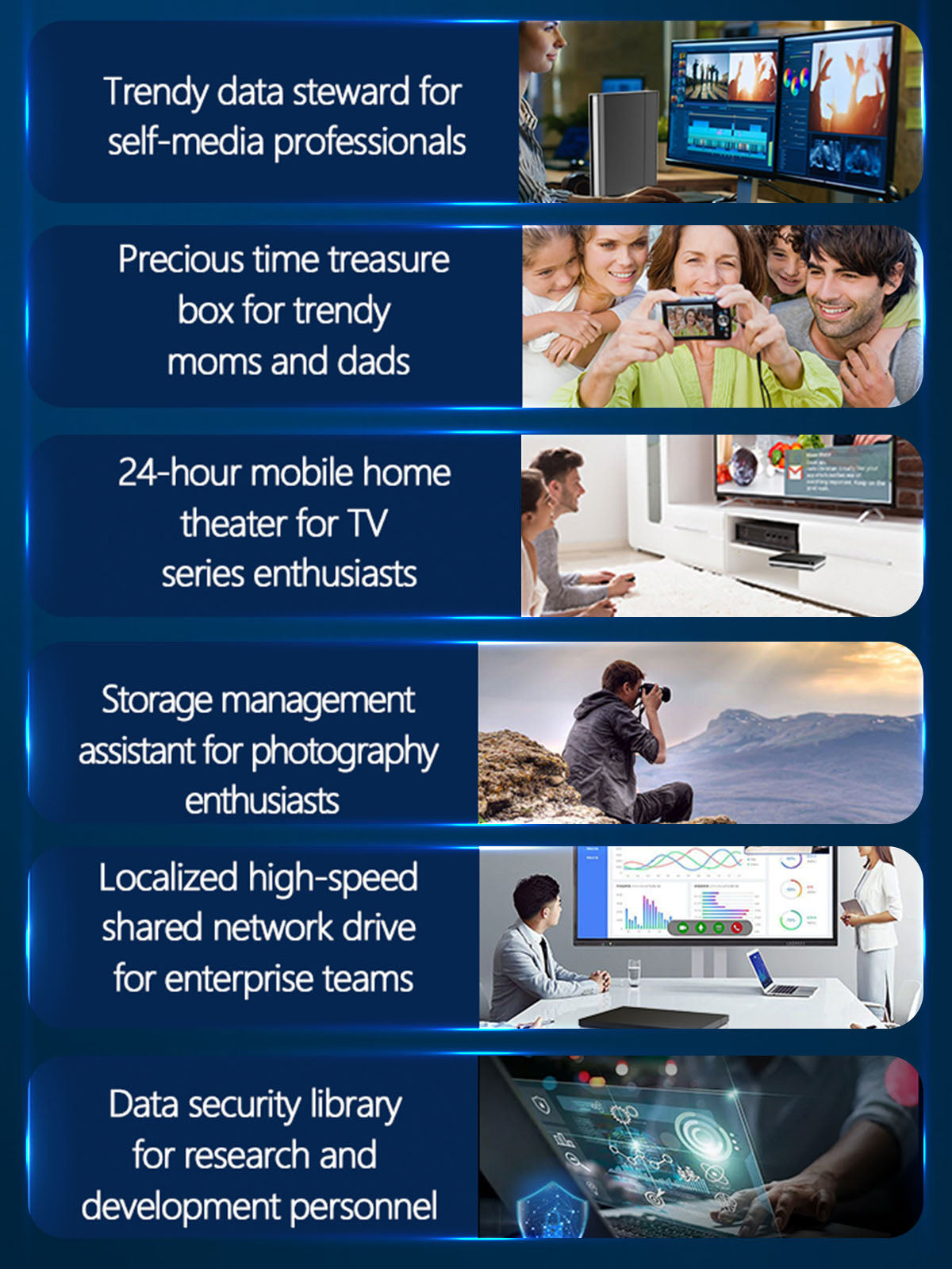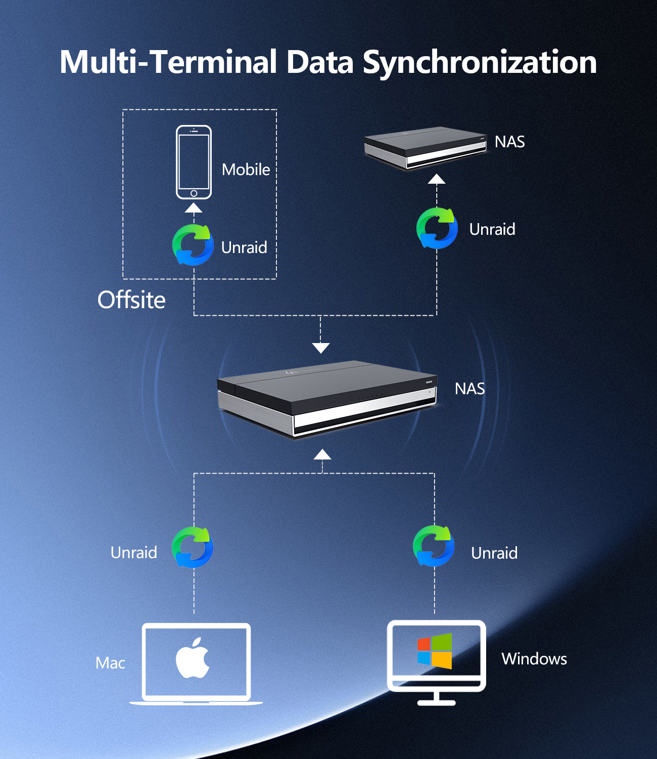 - Our network attached storage adopts unraid disk array, even if one disk is damaged, it will not cause data loss, which can guarantee the user's data security to the greatest extent. Supports automatic backup, remote download, intelligent photo albums, music playback, and intelligent partition.