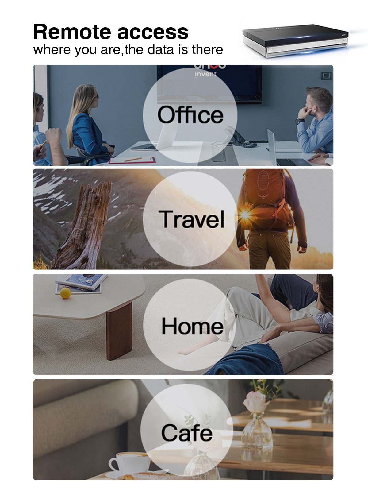 Access Your Files On-the-Go with this Network Attached Storage (NAS) ! Enjoy freedom and security as you effortlessly manage and share data from anywhere with remote access. Experience the convenience of a portable office – Your world, available anytime.