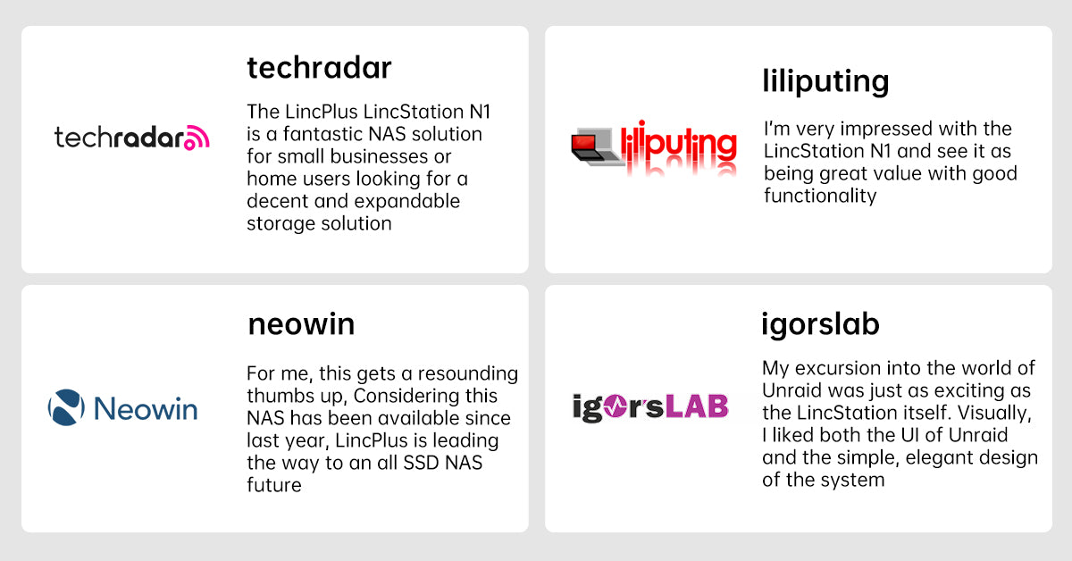 With an intelligent fan speed control system, it keeps SSDs,HDDs and NAS cool, quiet and efficient. When LincStion N1 is in standby mode and the CPU temperature is below 50 degrees Celsius, the fan does not rotate, resulting in almost no noise. The fan operates based on the temperature, ensuring a balance between performance and silence.