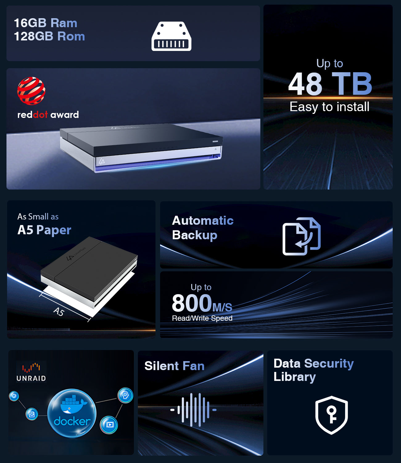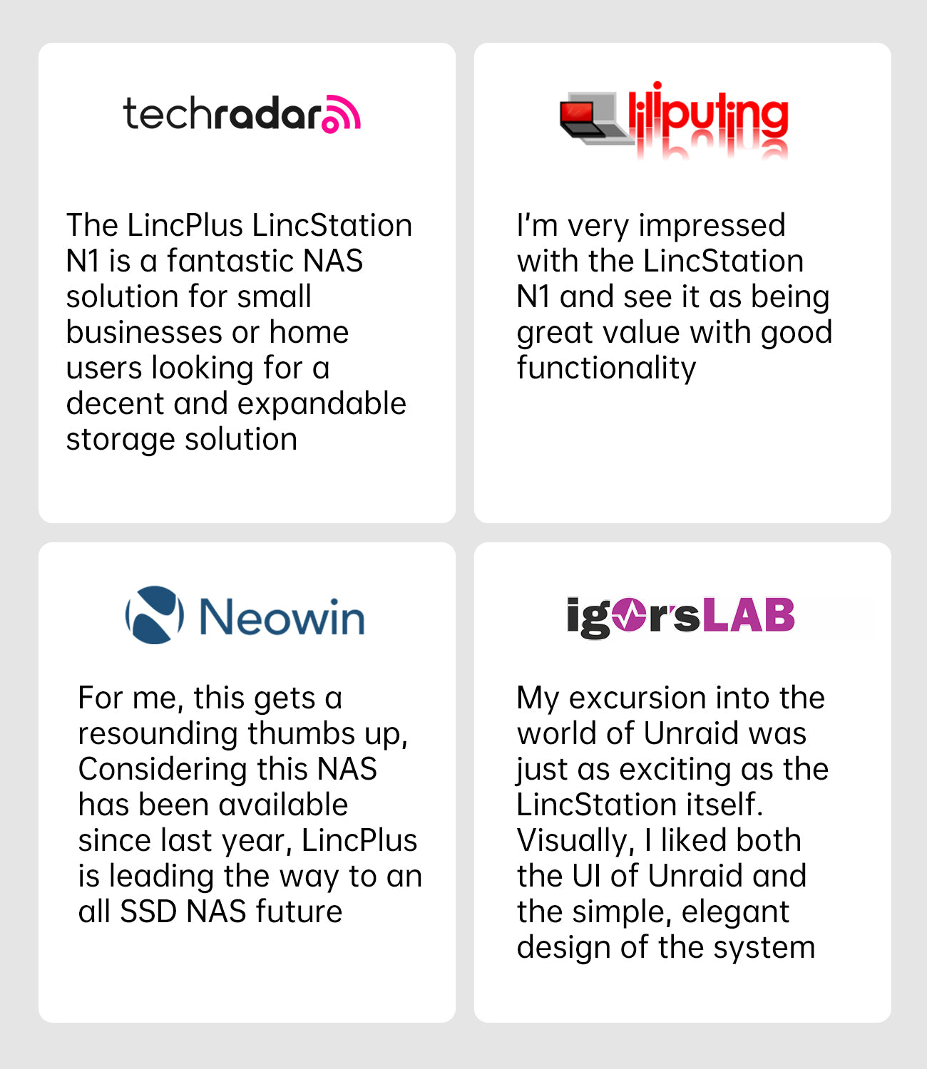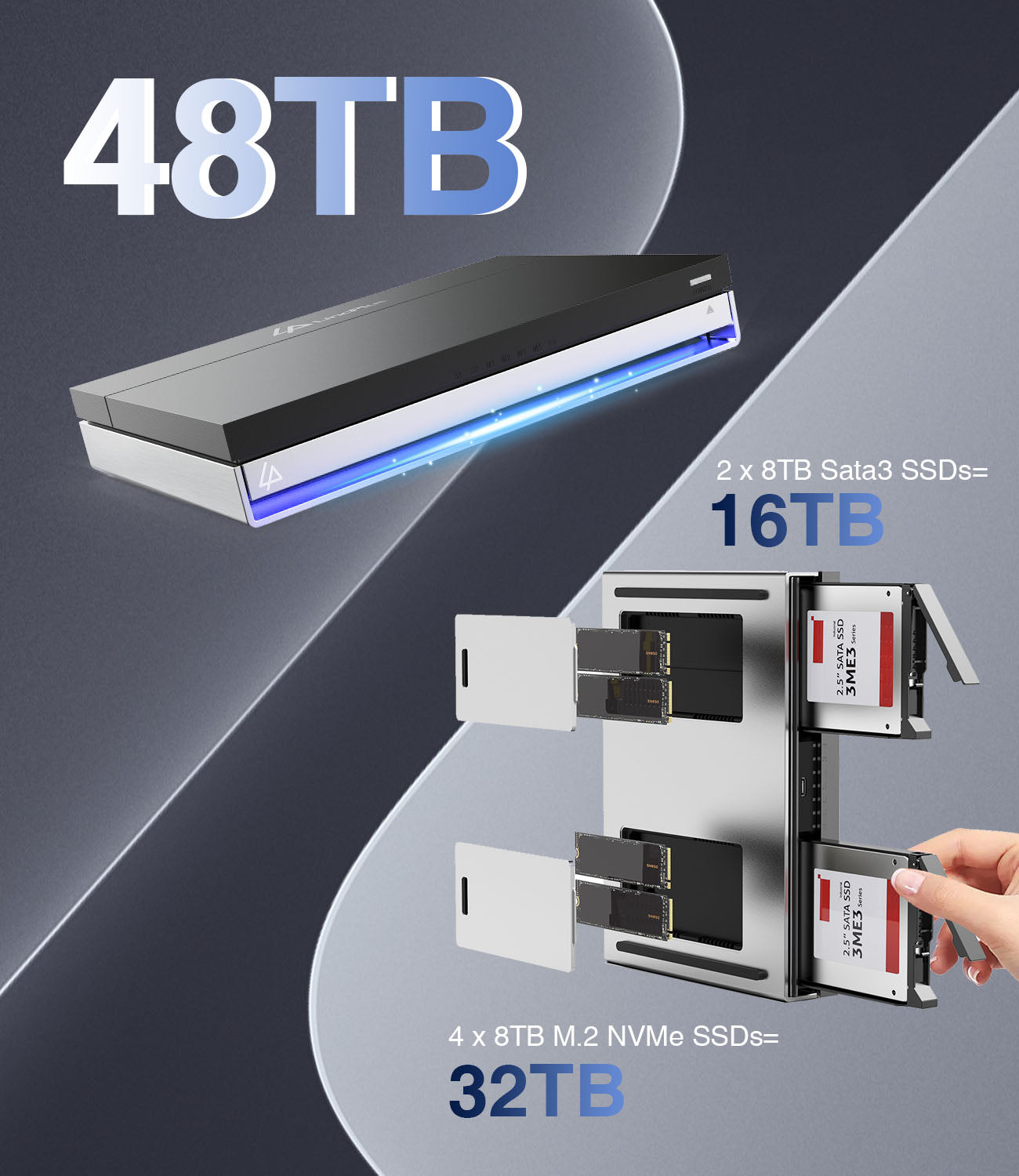 Combining 2 x 8TB Sata3 SSDs with 4 x 8TB M.2 NVMe SSDs, LincPlus LincStation N1 Provides a maximum capacity of up to 48TB. Flexibly store your data in a private cloud with 100% ownership